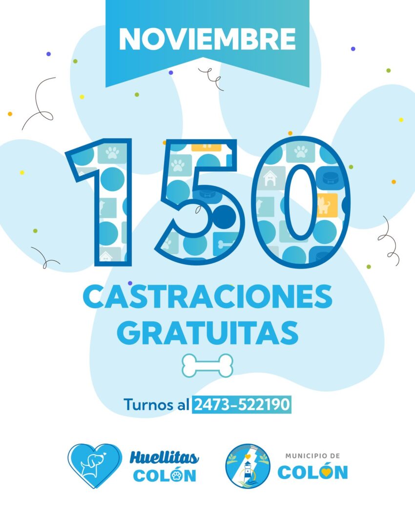 Celebraron que el programa Huellitas Colón realizó en el último mes 150 castraciomes gratuitas en el Partido de Colón.