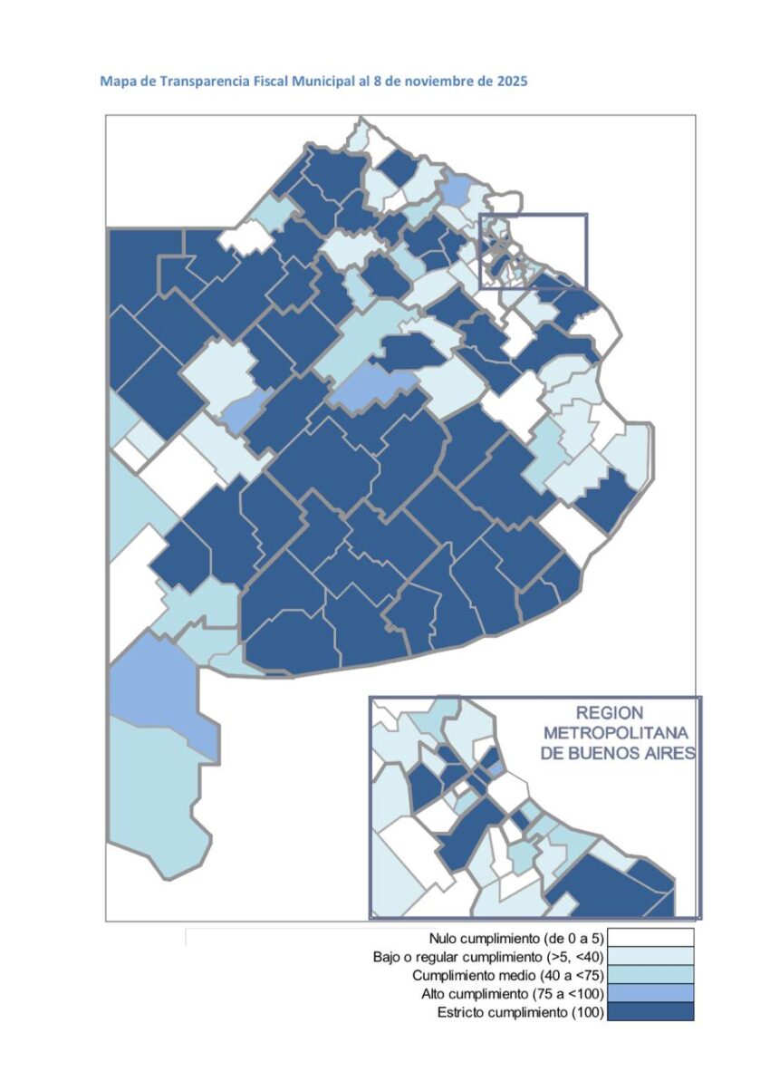 La Municipalidad de Colón informó que, de acuerdo al Informe de Transparencia Fiscal Municipal – Noviembre 2025, elaborado por la Asociación Argentina de Presupuesto y Administración Financiera (ASAP), el Municipio alcanzó el puntaje máximo de 100 puntos en el Índice de Transparencia Fiscal, integrando el grupo de distritos con cumplimiento estricto en la publicación y el acceso a sus cuentas públicas.