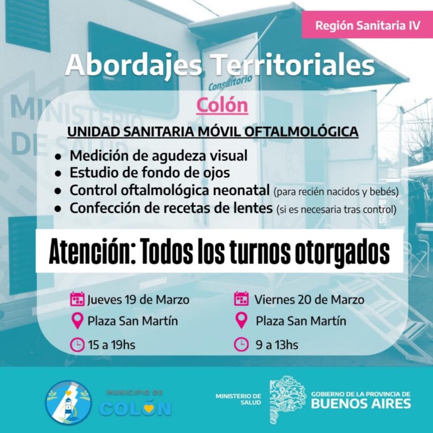 En el marco de los Abordajes Territoriales de la Región Sanitaria IV, llega a nuestra ciudad la Unidad Sanitaria Móvil para realizar controles oftalmológicos gratuitos.