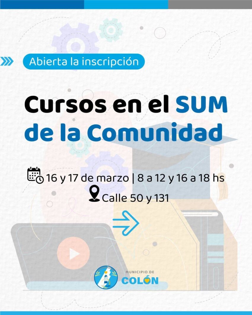 Los días lunes 16 y martes 17 de marzo se realizará la inscripción para la oferta de cursos que se dictarán en el SUM de la Comunidad (50 y 131).